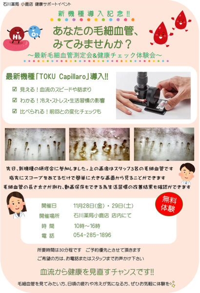 令和7年11月28日(金)29日(土)最新毛細血管測定会のご案内